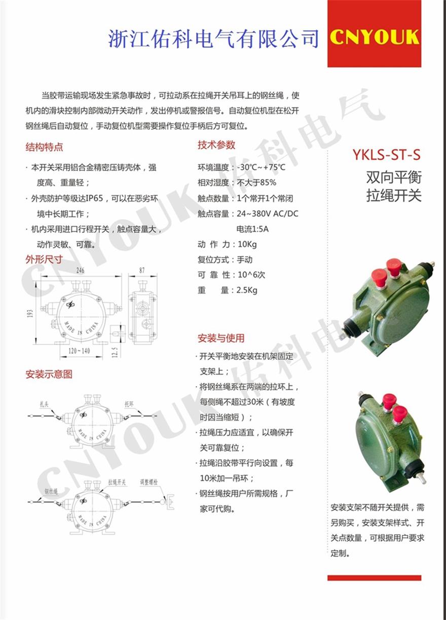 YKLS-ST-S双向平衡拉绳开关(手动)