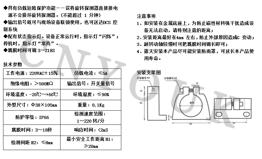 打滑开关不同于接近开关主要区别在于内部装有延时电路,他可根据被动轴不同的转速调整内部延时来达到保护设备的卡死堵转,旋转探测仪安装在被动轴上如图1 他是通过装在被传动轴上的检测片,利用电磁感应的原理给速度开关脉冲信号(当检测片转动到离速度开关4-8毫米距离时为一个脉冲)。