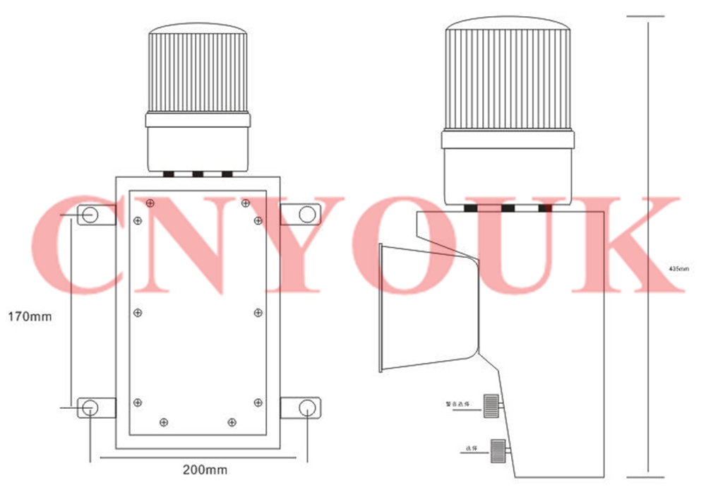 5、警音及语音输出功率为50W,声音宏亮,音量可调,适合在噪声较大的场合中使用。