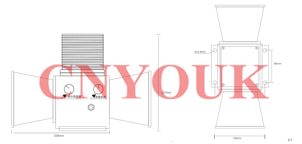 ● 设有二档警音、五档语音供现场自行选择,也可根据用户需要另行开发;