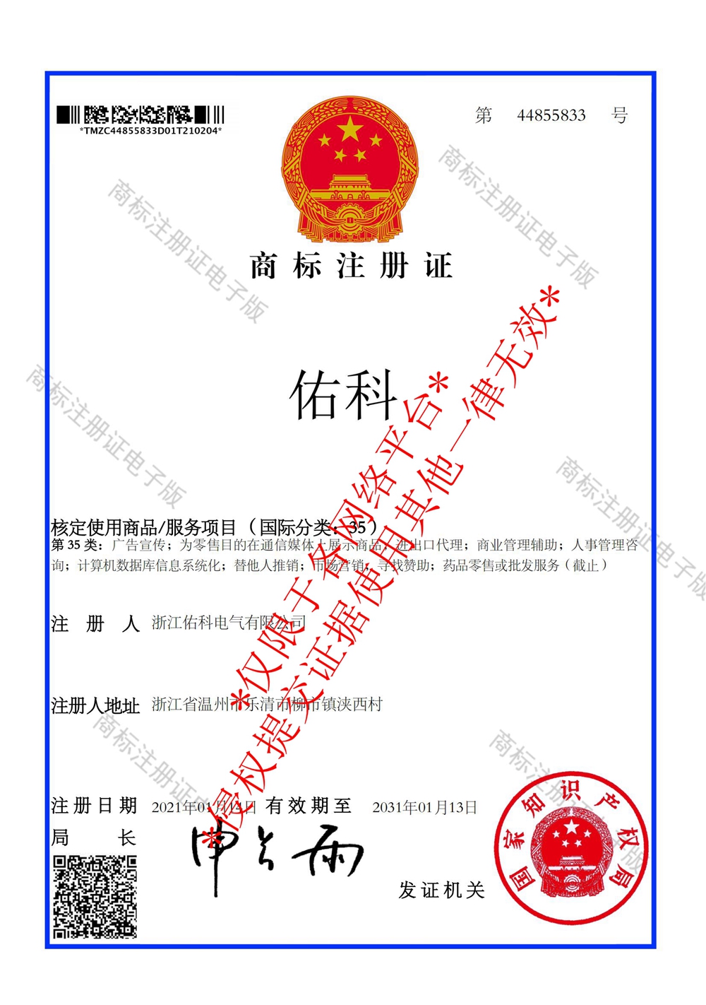 佑科商标注册号44855833